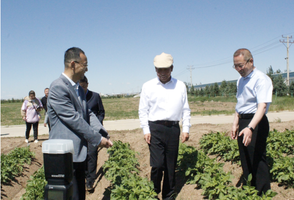 在試驗(yàn)田前,冀福善向段志強(qiáng)一行介紹,公司為科學(xué)種植,合理輪茬,從2015年開始進(jìn)入燕麥產(chǎn)業(yè),實(shí)施“馬鈴薯+燕麥”雙輪驅(qū)動(dòng)發(fā)展戰(zhàn)略,在察右中旗成立子公司——內(nèi)蒙古陰山優(yōu)麥?zhǔn)称酚邢薰尽D壳?,陰山?yōu)麥已完成投資2.4億元,年產(chǎn)2萬噸燕麥香米、2萬噸燕麥片、2000萬支燕麥杯、6000噸燕麥粉(莜面)和2萬噸藜麥米加工生產(chǎn)線已建成并投入使用,陰山優(yōu)麥?zhǔn)恰白灾螀^(qū)農(nóng)業(yè)產(chǎn)業(yè)化重點(diǎn)龍頭企業(yè)”、“自治區(qū)扶貧龍頭企業(yè)”。同時(shí),公司依托自身在加工薯種植管理技術(shù)、產(chǎn)品質(zhì)量、倉儲(chǔ)能力等方面的優(yōu)勢(shì),于2019年初在察右中旗成立子公司——內(nèi)蒙古蒙薯食品科技有限公司,計(jì)劃投資1.5億元,建設(shè)“年產(chǎn)8000噸低溫油炸薯?xiàng)l及2000噸果蔬脆片加工項(xiàng)目”,全力打造烏蘭察布市地標(biāo)性產(chǎn)品,創(chuàng)建全國大的低溫油炸薯?xiàng)l、果蔬脆片深加工企業(yè),已于今年投產(chǎn)。